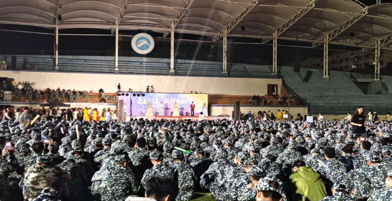 9月26日晚,湖南科技大学第一田径场华灯绽放,迷彩服与表演盛装交织成一幅生动的青春画卷。由化学化工学院联合体育学院、马克思主义学院、数学与统计学院、建筑与设计学院共同举办的“青春飞扬 ‘新程’启航”迎新晚会精彩上演,五院2025级两千余名新生齐聚一堂,共迎大学新生活的启航。