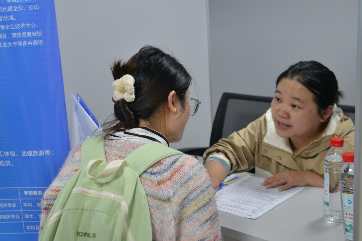 招聘会现场,校就业指导中心副处长邓辉、材料学院党委副书记屠波、化学化工学院周椿富老师和熊晨老师以及相关就业负责老师全程驻场。本次招聘会通过问卷调研前置梳理毕业生求职意向,精准匹配企业岗位资源;现场设置政策咨询区与简历指导专区,同步开展基层就业政策宣讲;动态建立企业信息库跟踪招聘进展,后续通过专场推介会精准输送人才,形成“需求对接-现场服务-长效跟踪”全流程服务闭环。