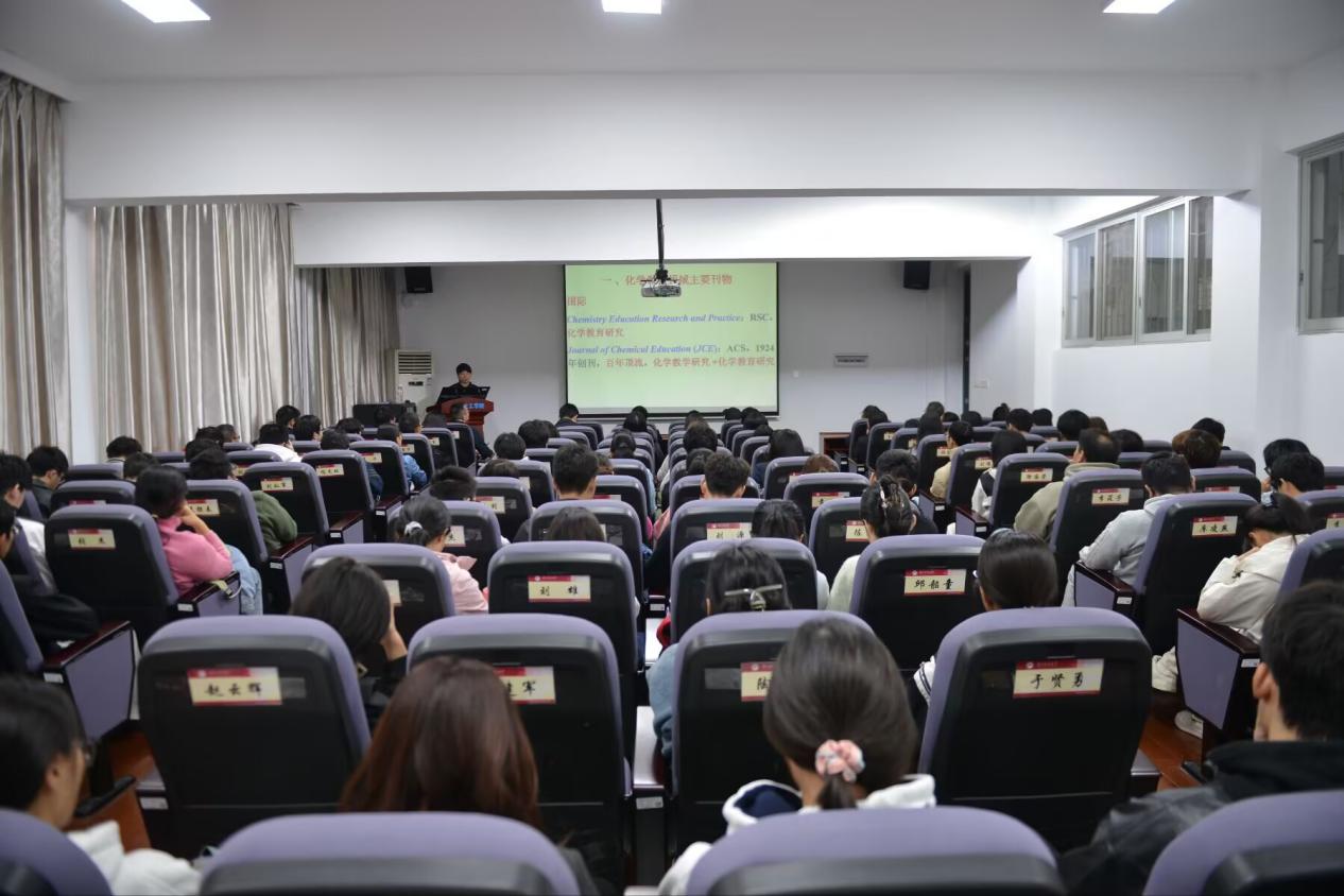 10月21日下午,主题为“基于科教融合的化学教学研究”的学术讲座在化工楼310报告厅顺利举行。本次活动由化学化工学院主办,特邀韩山师范学院蔡龙飞教授主讲,由化学化工学院副院长汪靖伦教授主持,学院部分师生参与学习交流。