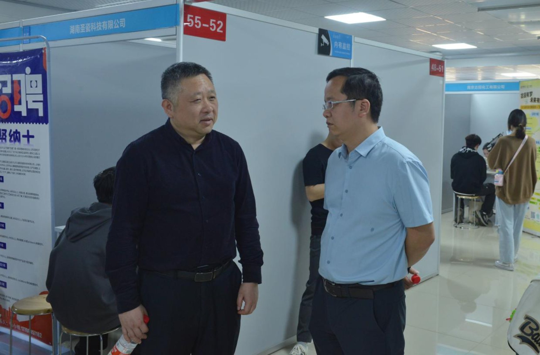 校就业指导服务中心邓辉副处长、材料学院党委副书记屠波与用人单位交流