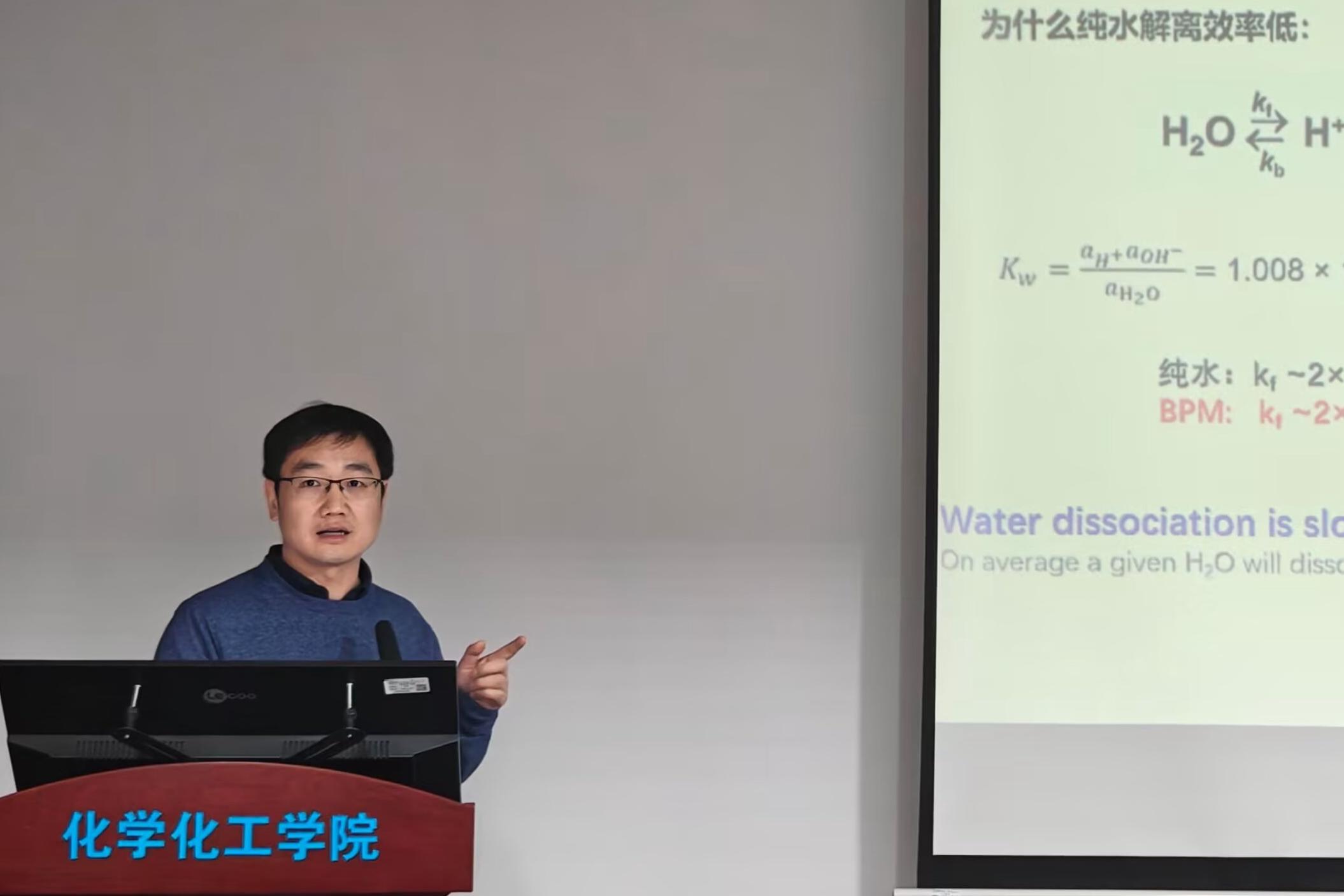 3月20日上午,化学化工学院与理论有机化学与功能分子教育部重点实验室联合举办了“双极膜的调控与应用”主题讲座。本次讲座在化工楼310学术报告厅举行,由化学化工学院副院长汪靖伦主持,中国科学技术大学吴亮教授主讲,学院部分师生代表与会。